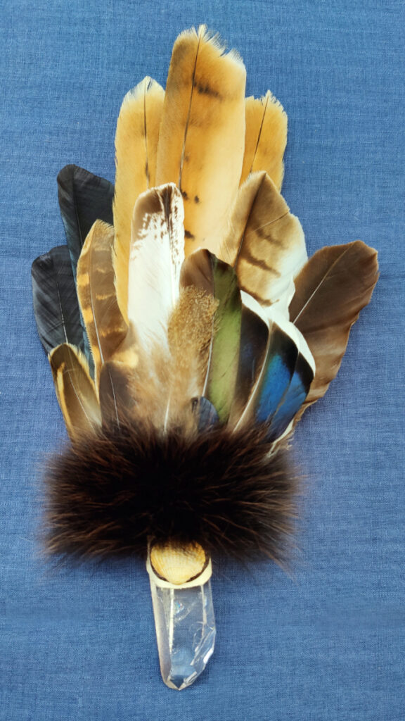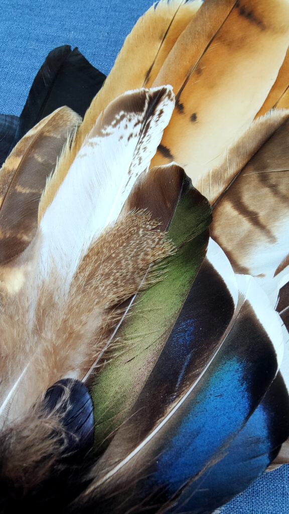 Manche Räucherfächer erzählen nicht nur von den Winden, die sie bewegen, sondern auch von der Zeit, die in ihnen ruht. Dieser hier ist so ein besonderes Stück. Linda hat die Federn über lange Zeit selbst gesammelt, vom Bodensee, aus Wäldern und Feldern. Ente, Rotmilan, Möwe, Krähe, Bussard und sogar Eulenfedern sind darin vereint.