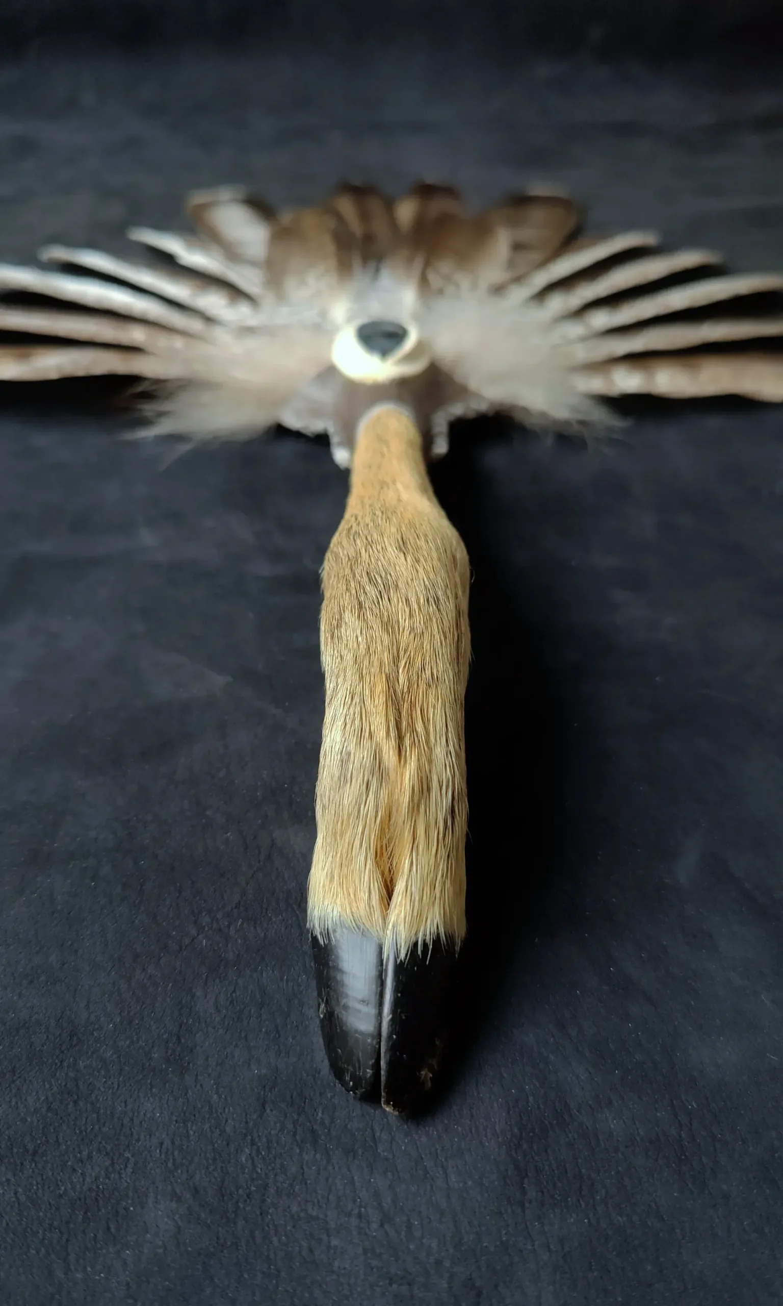 So wurde dieser Fächer zu einem Gefährten der vier Kräfte – geschaffen aus Fundstücken des Waldes, getragen von Intuition und Handwerk. Kein Werkzeug, sondern ein Hüter einer Begegnung – zwischen Mensch, Tier, Element und Geist.