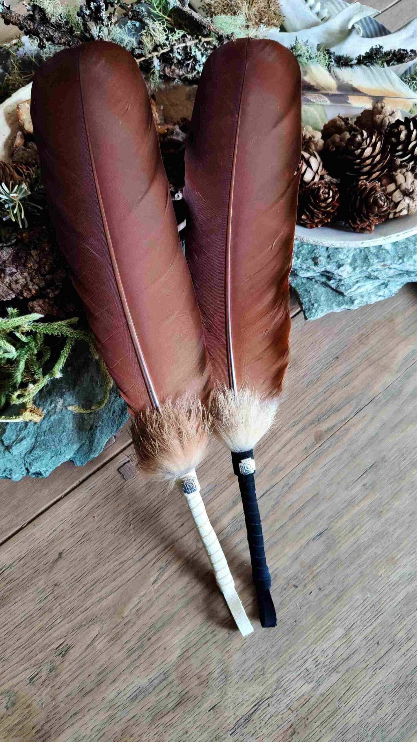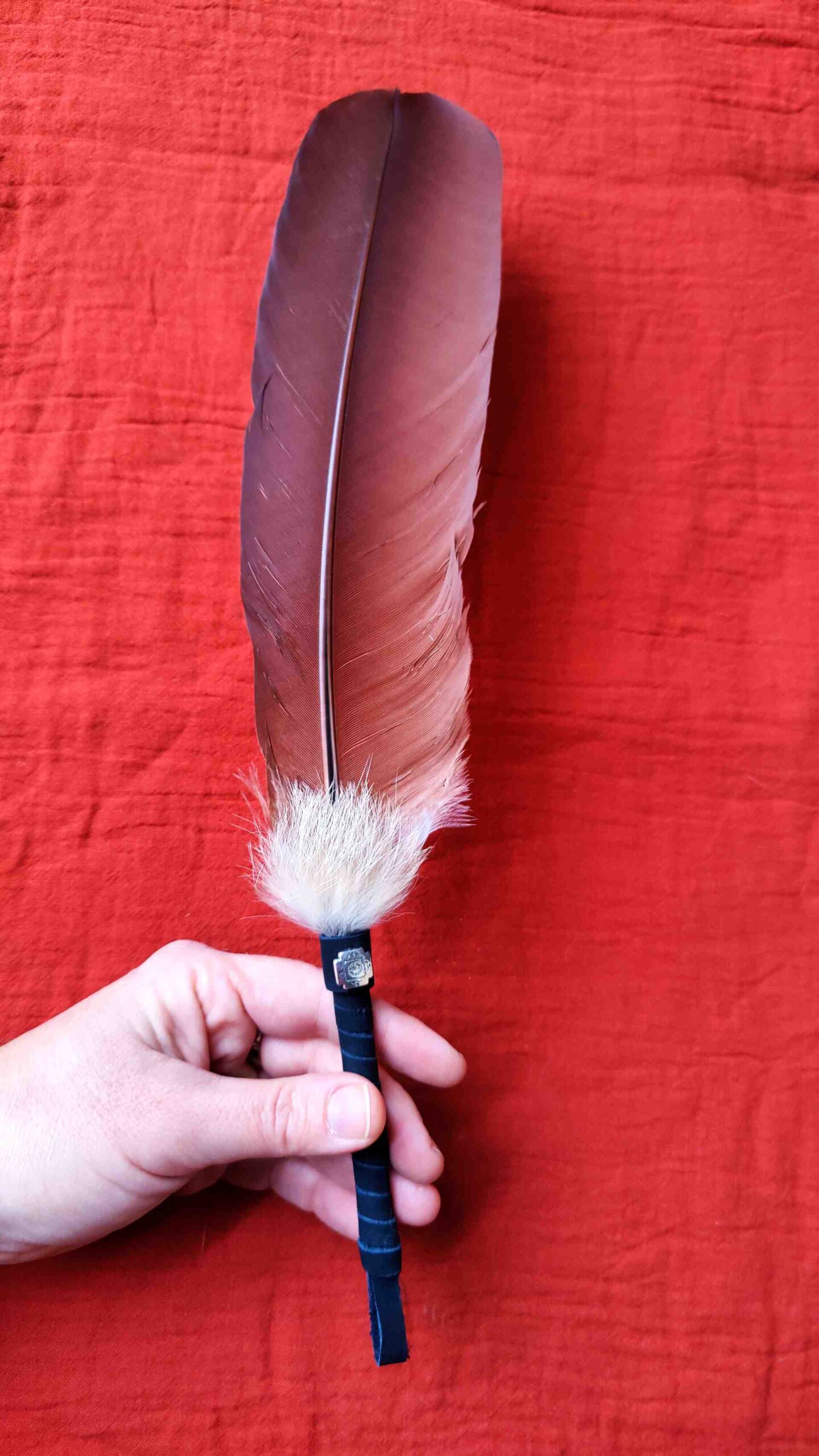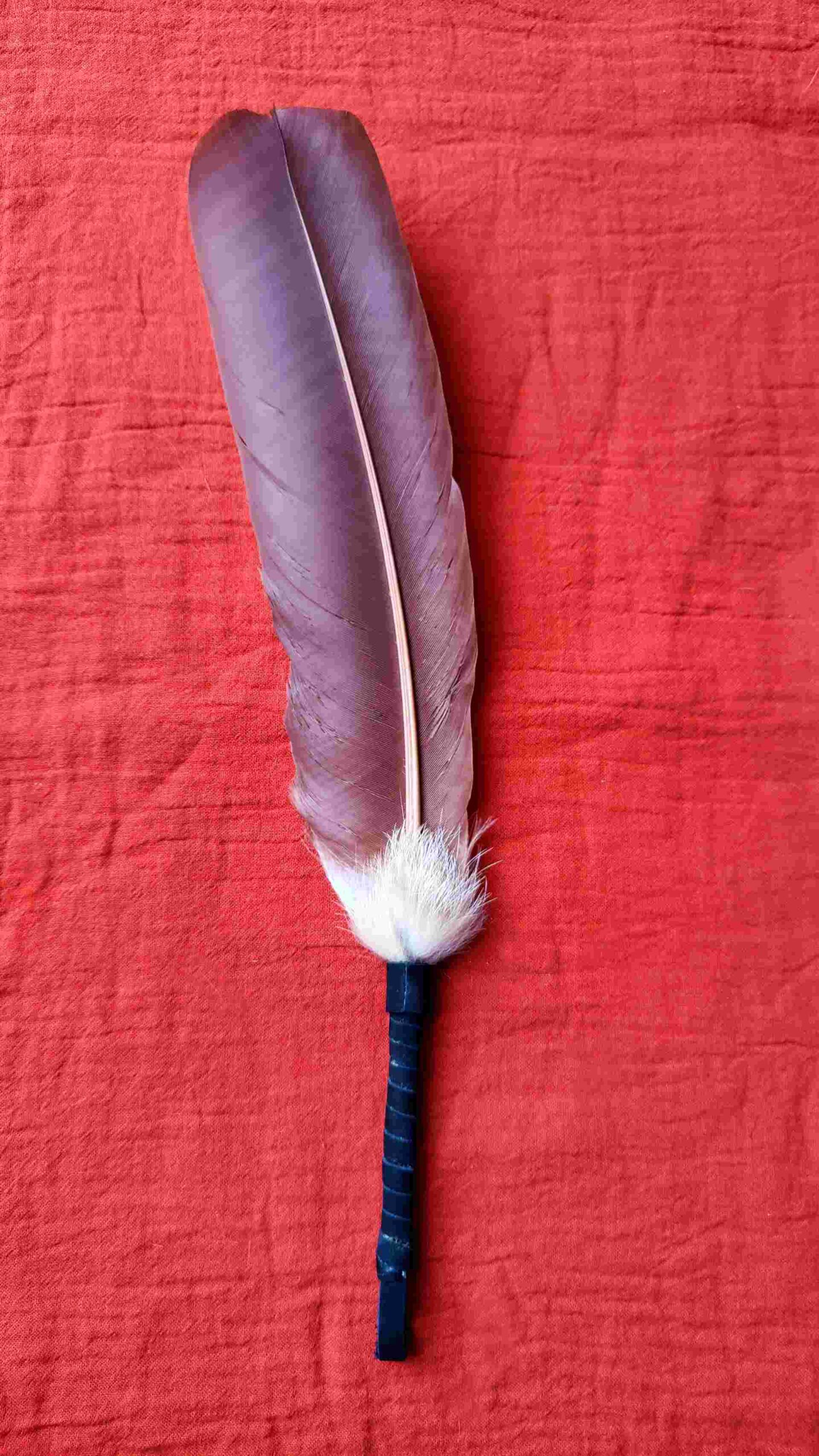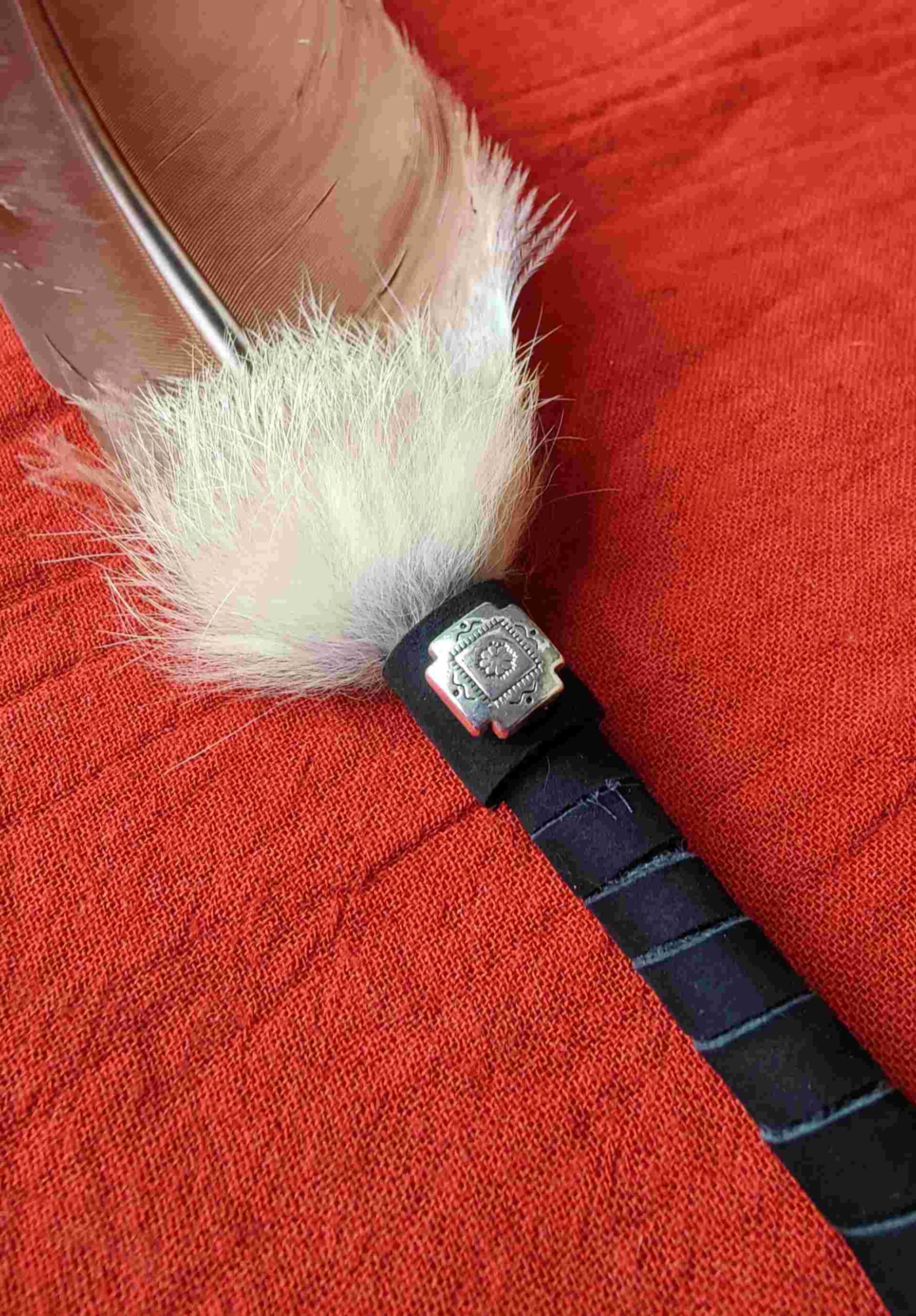Diese Feder kann sowohl als Räucherwerkzeug wie auch als Talking Stick verwendet werden: als Zeichen des Wortes, das in Achtsamkeit weitergegeben wird.