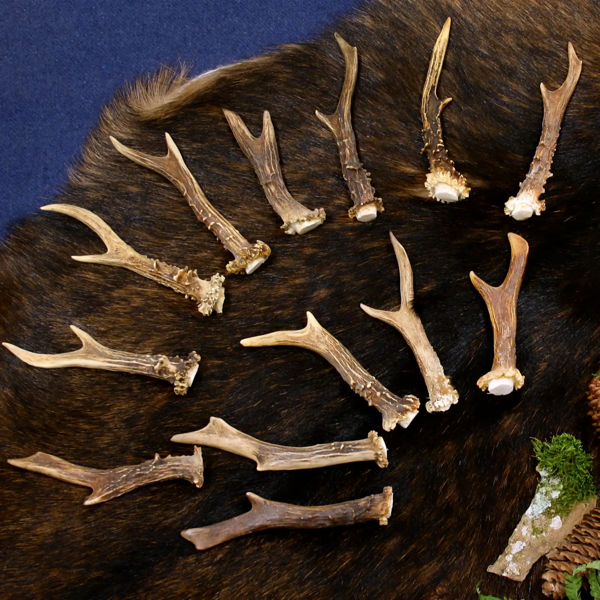 Diese echten Rehgehörne stammen vom Rehbock und zeigen die gewachsene Form des Tieres in ihrer ursprünglichen Klarheit. Jedes Stück ist naturbelassen, individuell und geprägt vom Leben im Wald.